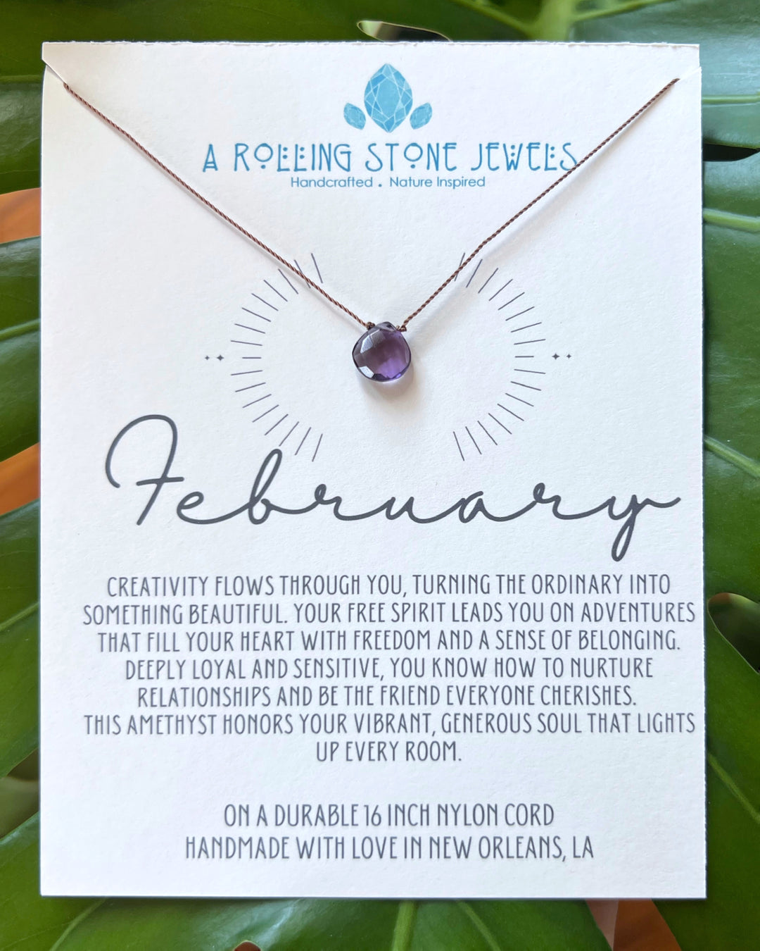 Each month comes with a dainty birthstone necklace, as well as a card describing all the reasons why we LOVE the people born in that month! Perfect, sweet gifts for others or yourself